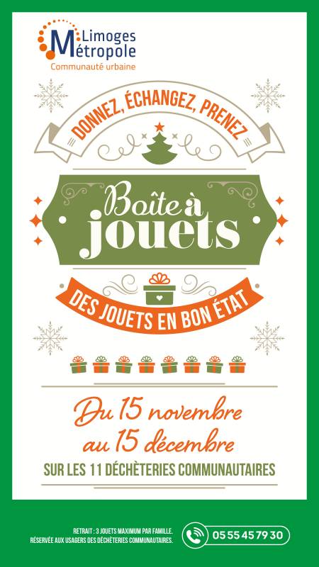 Limoges Métropole lance à nouveau cette année une collecte spéciale de fin d'année en déchèterie, la « Boîte à Jouets ».