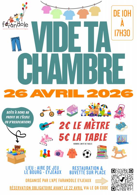 Farandole vous propose de vider votre chambre le 26 avril 2026. Venez nombreux.